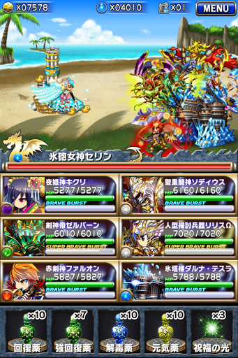 リーダーに「パーティにユニットが5属性以上で攻撃力50%アップ&防御力と回復力アップ」のリーダースキルを持つ剣神帝ゼルバーンを、