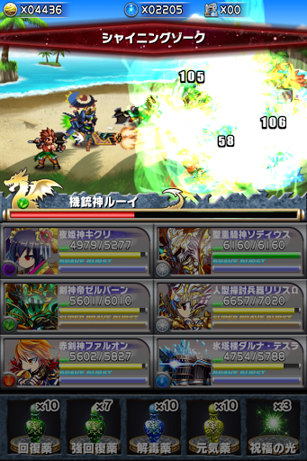 「シャイニングゾーク」の全体攻撃がつらい場合、雷護石を使って防御力を上げていってもよさそう。