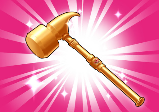 『鍛冶屋』で黄金のハンマーを使うと、調合パターンが合っていれば必ず成功する。ガチャガチャで入手できる貴重なアイテム。