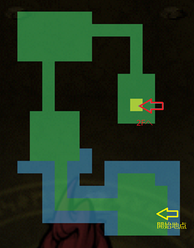 2Fに入ったらモンスターハウスがあるため注意です。開始早々敵が近づくまで杖や弓で攻撃し、敵が近づいたら後方の1本道に下がり1体づつ相手をしましょう。