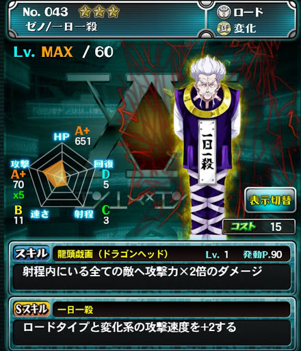 ゼノ/一日一殺【★3】のキャラクター情報です。 参考にしてください。