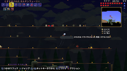 スケルトロン戦は別のバイオームに移動すると強制的に戦闘終了になるので、ダンジョンの上に戦場を作って闘いましょう!