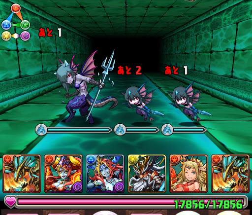 1Fと同様の構成です、お邪魔ドロップへ変換してくるため、今回のBOSSでは使えないターンを遅らせる威嚇等のスキルの唯一の使い所です。