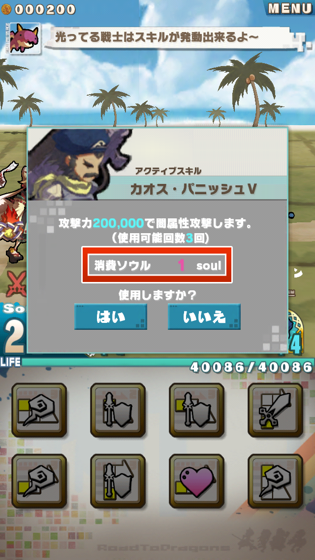 ▲アクティブスキルを使うには、ソウルの消費が必要